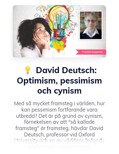 Med så mycket framsteg i världen, hur kan pessimism fortfarande vara utbredd? Det är på grund av cynism, förnekelsen av att "så kallade framsteg" är framsteg, hävdar David Deutsch, professor vid Oxford University och en av världens ledande intellektuella om optimism.