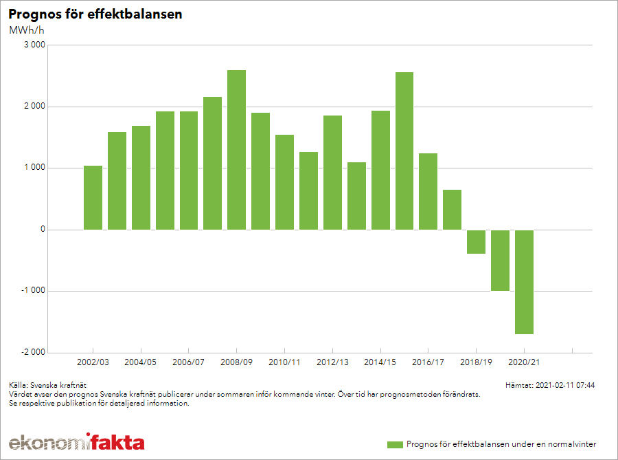 Sett över ett Är har Sverige ett överskott av energi och exporterar dÀrför el till andra lÀnder. Vissa dagar pÄ Äret, sÀrskilt nÀr det Àr kallt och inte blÄser, behöver vi importera el. Det kan leda till vÀldigt höga elpriser och i vÀrsta fall, om andra lÀnder Àr i samma situation och inte kan exportera, till storskaliga strömavbrott.