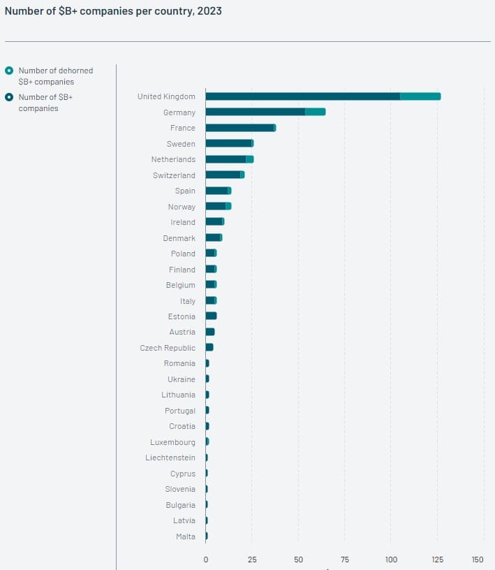 Ăven om man inte mĂ€ter per invĂ„nare ligger Sverige högt upp. PĂ„ fjĂ€rde plats i antalet unicorns i Europa.