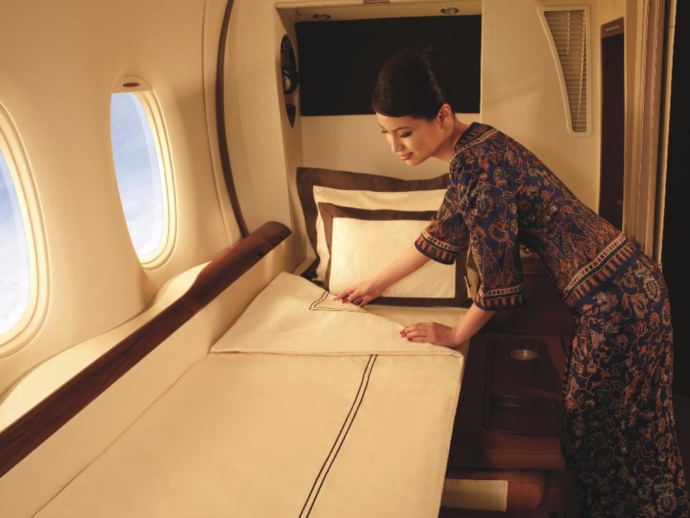 Om du tillhör den lite snÄlare typen kan du istÀllet Äka med Cathay Pacific för bara en kvarts mille. DÄ fÄr du ingen egen sÀng, men en rejÀlt fÀllbar stol och ett eget litet bÄs dÀr du kan dricka gratis champagne och tugga i dig rysk kaviar.