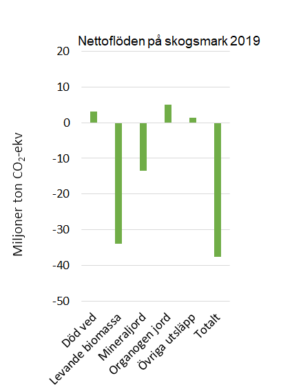 En undersökning frÄn NaturvÄrdsverket visar att skog och mark tog upp 35,5 miljoner ton koldioxidekvivalenter under 2019. Som jÀmförelse kan vi nÀmna att alla personbilar i Sverige slÀppte ut 10,1 miljoner ton under 2019.