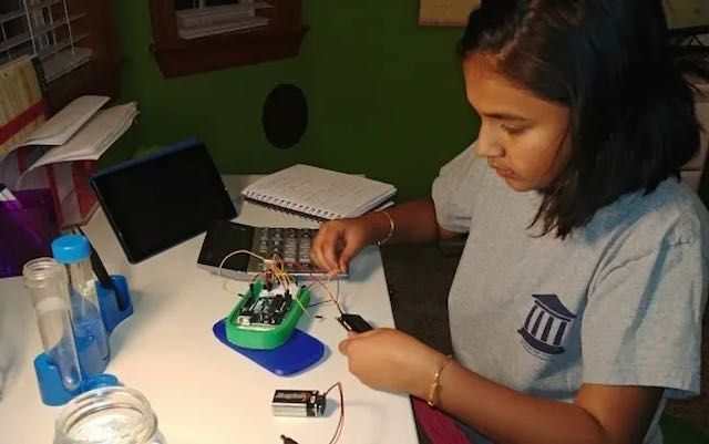 Gitanjali upptÀckte nanotuber (av kolmolekyler) pÄ en hemsida hos MIT - och sÄ smÄningom det faktum att tubernas elektriska motstÄnd förÀndras vid med bly i nÀrheten. Elektronerna rör sig lÄngsammare vid nÀrvaro av bly - ju mer bly, desto lÄngsammare gÄr de.