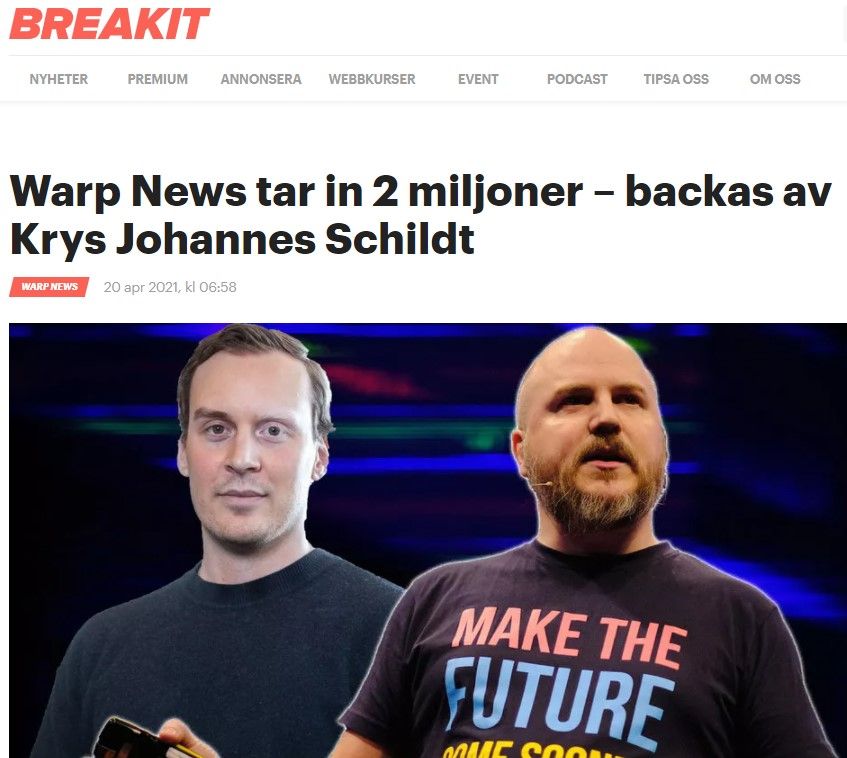 - Ny investering i Warp News.