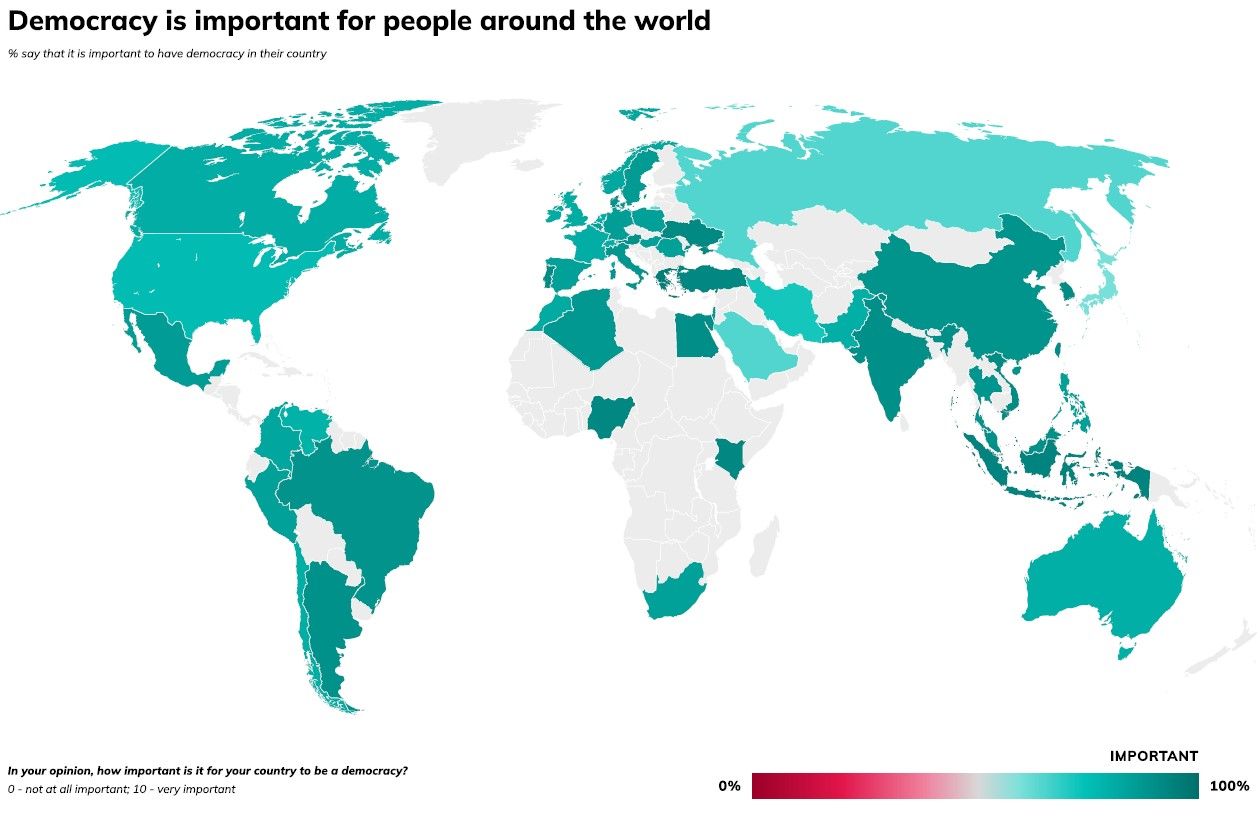 Demokrati Àr viktigt för medborgarna i alla 53 lÀnder i undersökningen, bÄde demokratier och icke-demokratier.