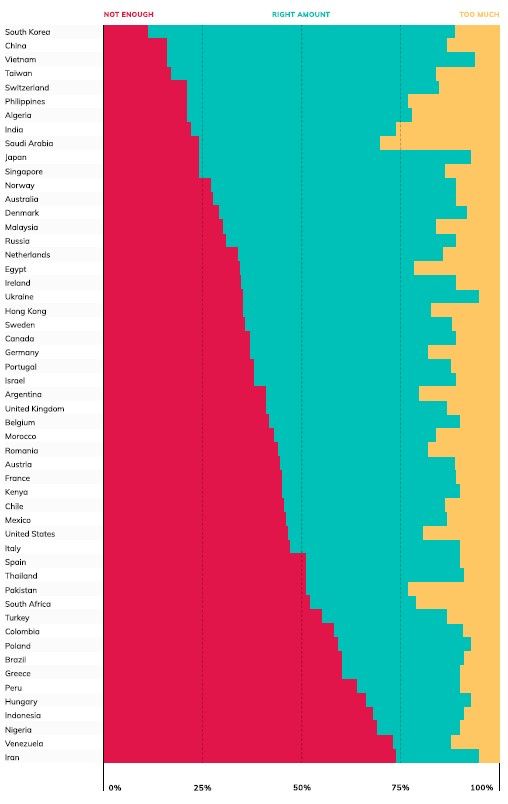 Undersökningen genomförs pÄ uppdrag av Alliance of Democracies, i 53 lÀnder med nÀstan 54 000 respondenter.