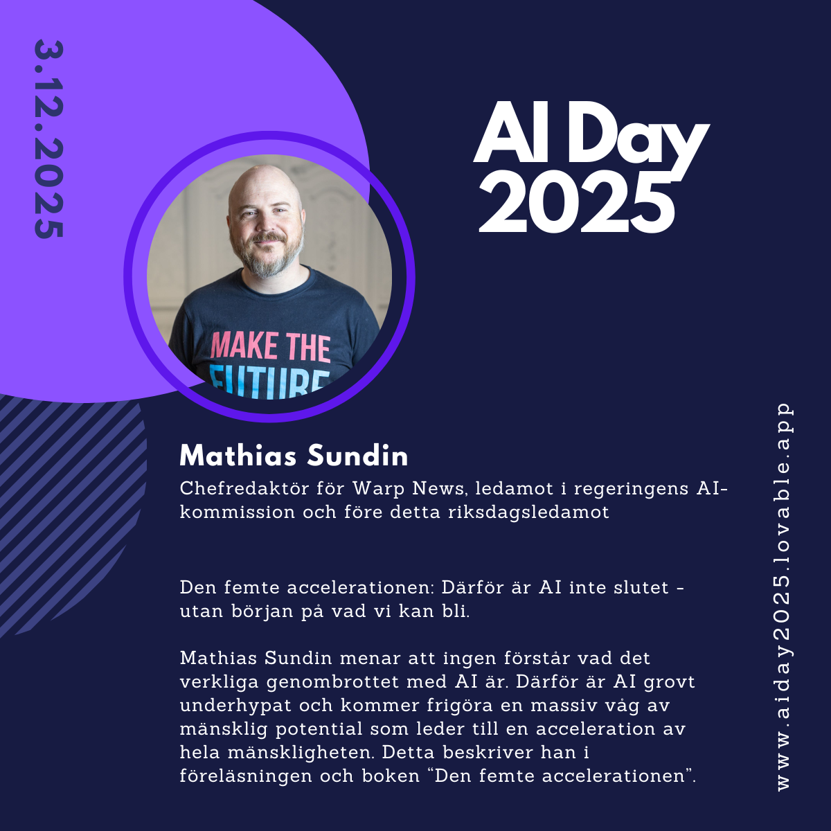 Jag har tjuvkikat pÄ programmet och kommer vara med hela dagen och lÀra, men Àven hÄlla i ett av passen. DÀr kommer jag mÄla i breda penseldrag utifrÄn Den femte accelerationen, men ocksÄ om hur jag anvÀnt AI i arbetet med att skriva den.