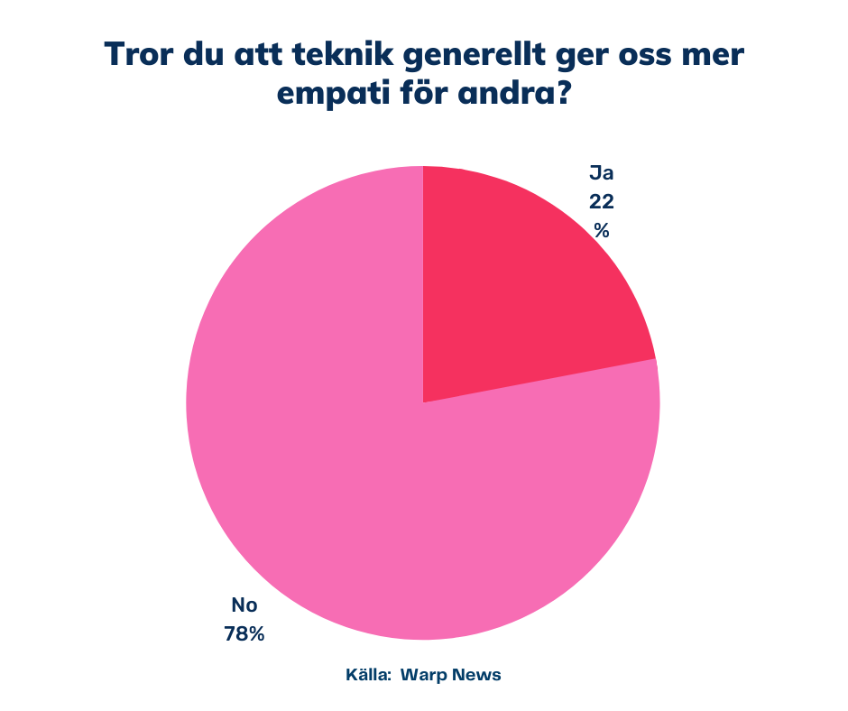 Tror du att teknik i allmÀnhet ger dig mer empati för andra? 78 procent av de tillfrÄgade i vÄr undersökning tror inte det. MÄnga ser, felaktigt, teknik som motsatsen till nÀrhet, medkÀnsla och empati.