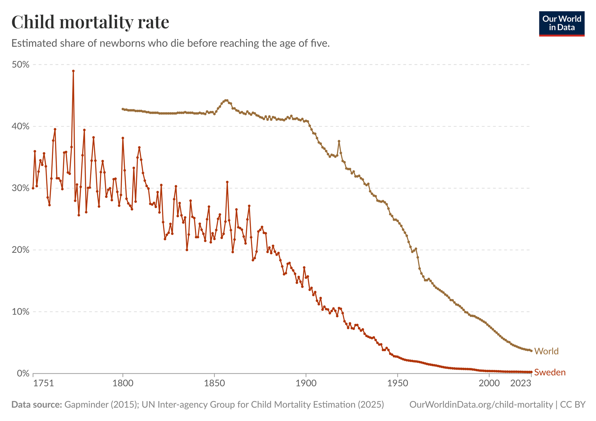 PÄ 1600-talet dog ungefÀr vartannat barn innan fem Ärs Älder. Sedan dess har det sjunkit kraftigt, till ungefÀr 4 procent idag.