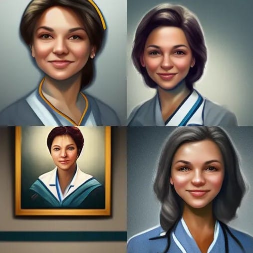Det hĂ€r var de bĂ€sta bilder man kunde skapa för mindre Ă€n tvĂ„ Ă„r sedan, med prompten "nursing school leaderâ: