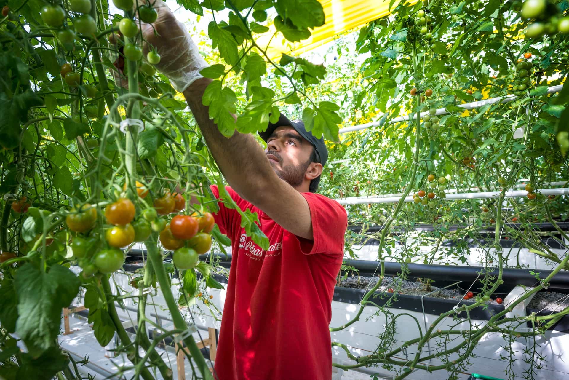 I HÀrnösand drivs samma idé i stor kommersiell skala. PÄ ett industriomrÄde stÄr lÄnga rader av vÀxthus som tillsammans rymmer 4000 tomatplantor. Strax intill stÄr lagerbyggnader och stora vattentankar fyllda med laxöringar. AnlÀggningen producerar 1200 ton tomater och 40-50 ton laxöring om Äret.