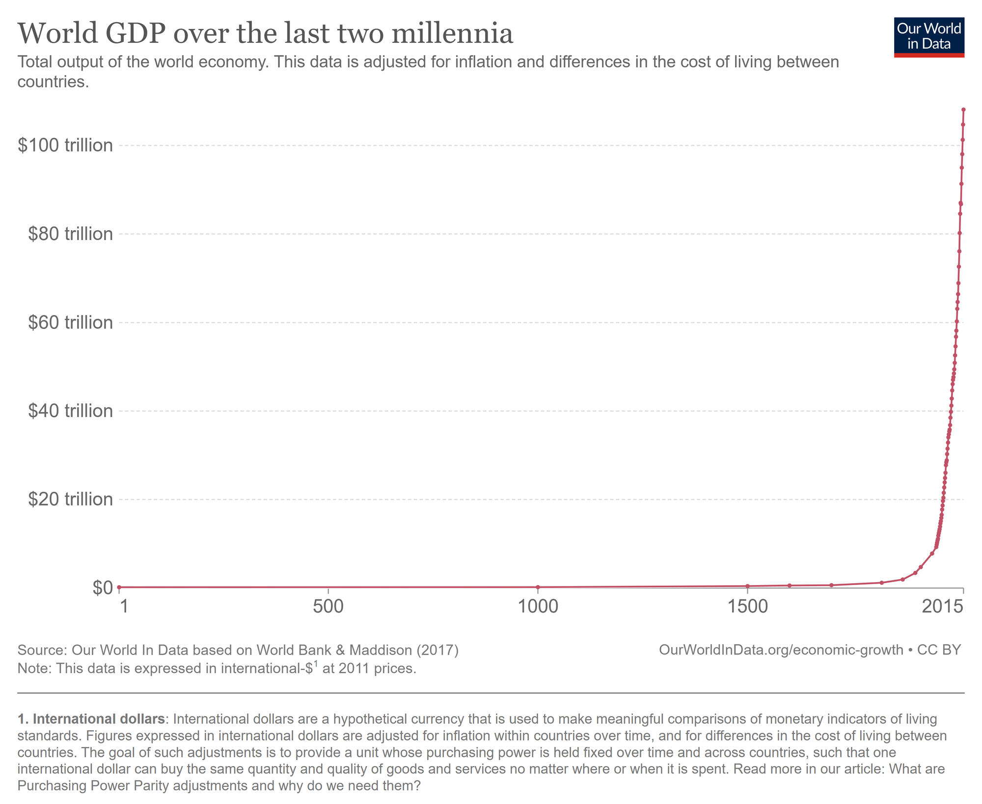 Kolla pÄ den hÀr grafen över de senaste tvÄ tusen Ären av ekonomisk tillvÀxt.