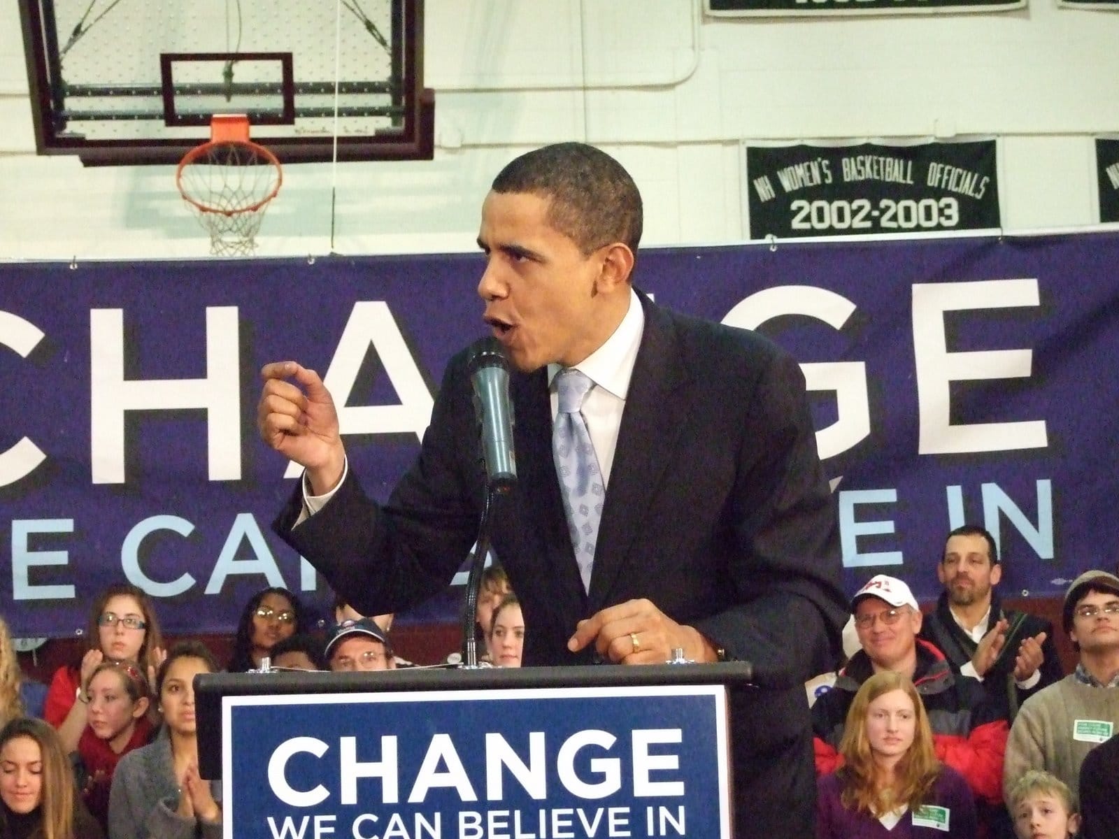 Jag fick också lyssna på det mest fantastiska politiska tal jag någonsin hört live. Barack Obama i gympasalen på en skola i Concord. Vi fick vänta ute i kylan i över en timme, så tårna var stelfrusna när vi väl kom in. Men oj, det var det värt. Det var nästan läskigt hur påverkad jag blev. Så här skrev jag då: