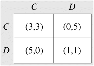 (och du får 5 poäng). Om du tiger och din kumpan skvallrar så får du 10 års fängelse och han går fri. Om ni båda tiger så får ni högst 6 månaders fängelse (och 3 poäng var). Om ni båda skvallrar får ni båda 5 års fängelse (eller 1 poäng var).