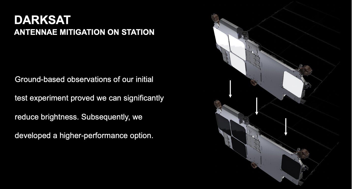 För att motverka ljusföroreningar konsulterar SpaceX astronomer för att finna lösningar. För att minska och förebygga ljusproblemen har de diskuterat flera lösningar. Elon Musk har pÄ Twitter poÀngterat att vid stora astronomiska observationer kan satelliternas reflekterande delar programmeras att vÀndas bort. Vidare har Starlink och Musk jobbat pÄ att sÀnka satelitteras reflektionsförmÄga genom att designa dem mörkare, d.v.s. genom att tÀcka över reflekterande delar. En faktor som företaget fortfarande jobbar pÄ.