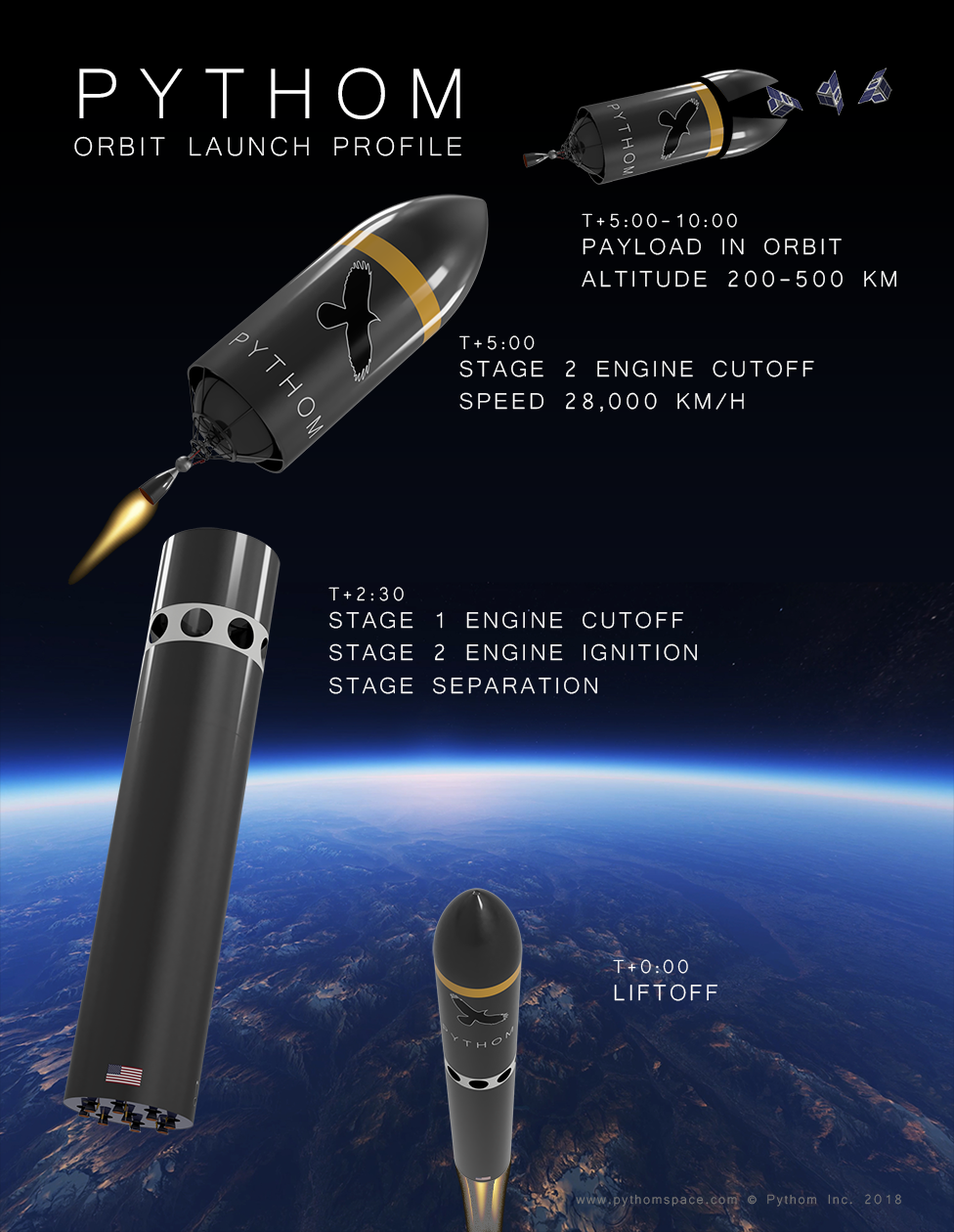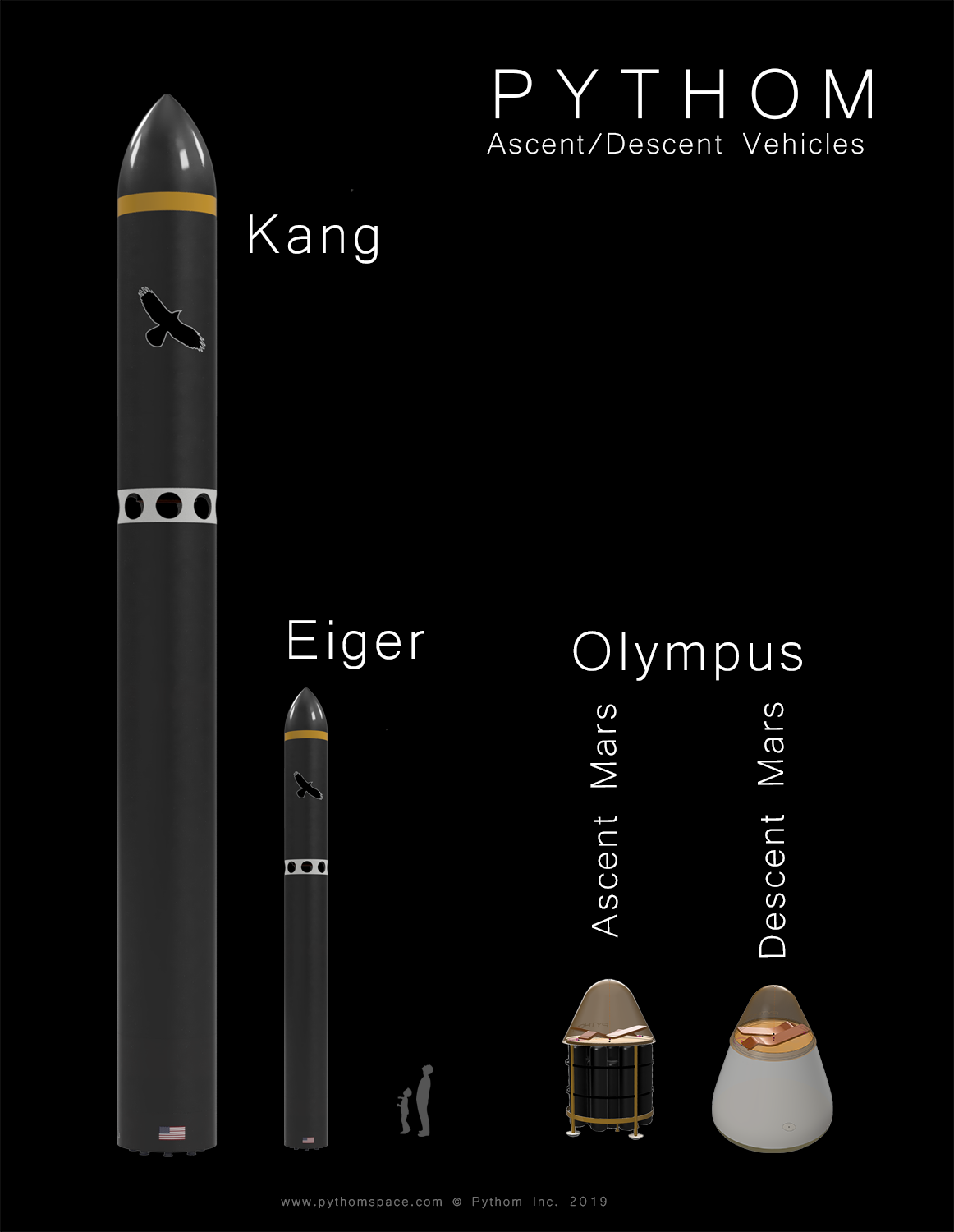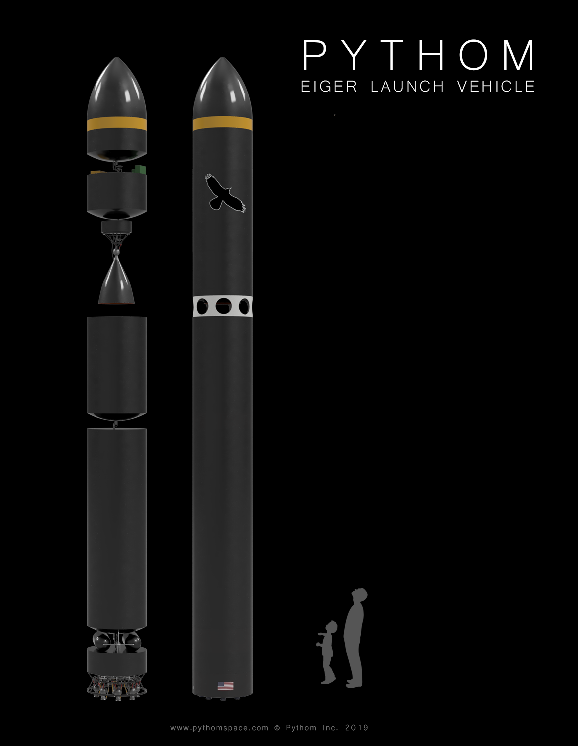 Deras första raketmodell heter Eiger. Den Àr 12 meter hög, 1,1 meter i diamater och ska kunna ta 150 kg till omloppsbana. 80-90 procent av dagens satelliter Àr inom den viktklassen. Pythom kommer göra tvÄ stycken och skjuta upp den ena frÄn Amerika och den andra frÄn Europa.
