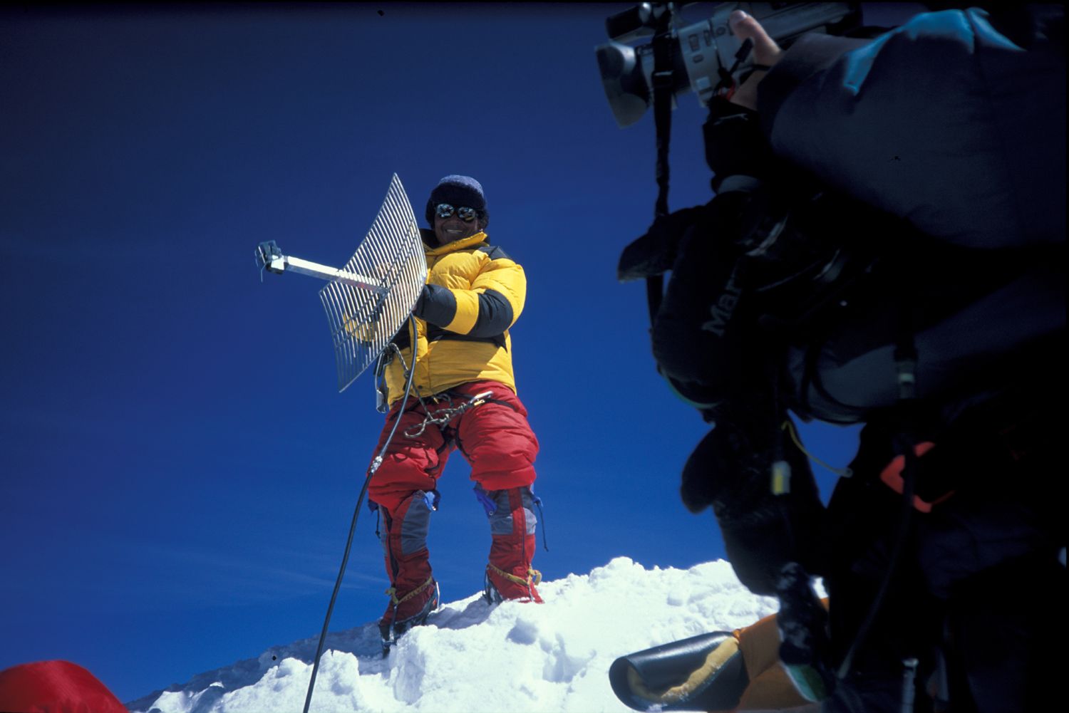 De flesta tittar ner nÀr de stÄr pÄ toppen av Mount Everest. Tina tittade upp. Detta var sÄ nÀra man kunde komma rymden pÄ jorden sÄ hon ville ta in den frÄn denna unika plats.