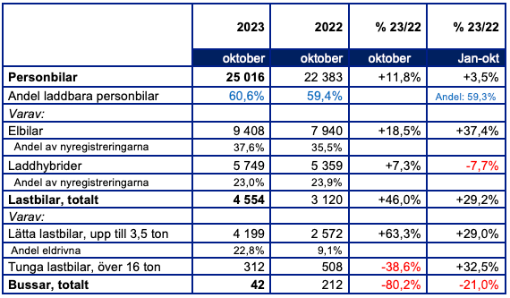 Nyregistreringen av elbilar ökade i oktober, jÀmfört med samma mÄnad förra Äret, och för nionde mÄnaden detta Är slog elbilarna rekord.